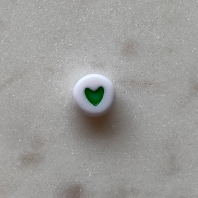 Cuenta de color corazón verde. Diámetro 8mm. Taladro 1mm