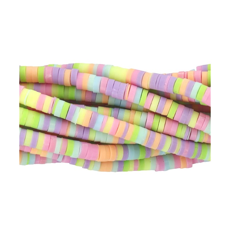 Arandelas de arcilla polimérica en color multicolor pastel de 6mm.