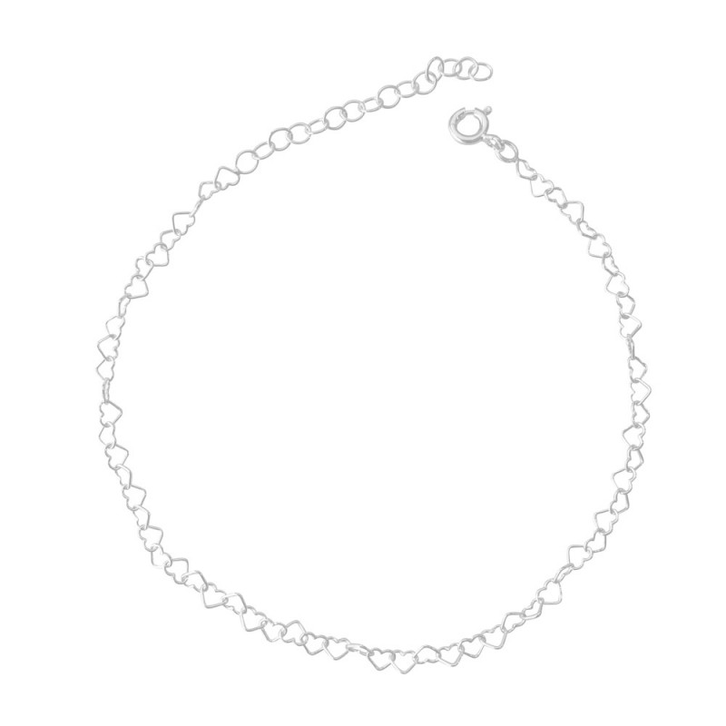 Tobillera de mini corazones en plata de ley 925. Fabricado en España.