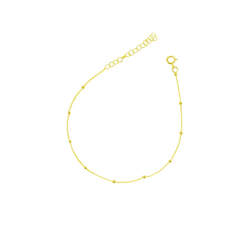 Tobillera de mini bolitas en plata de ley 925, bañada en oro de 18k. Fabricado en España.