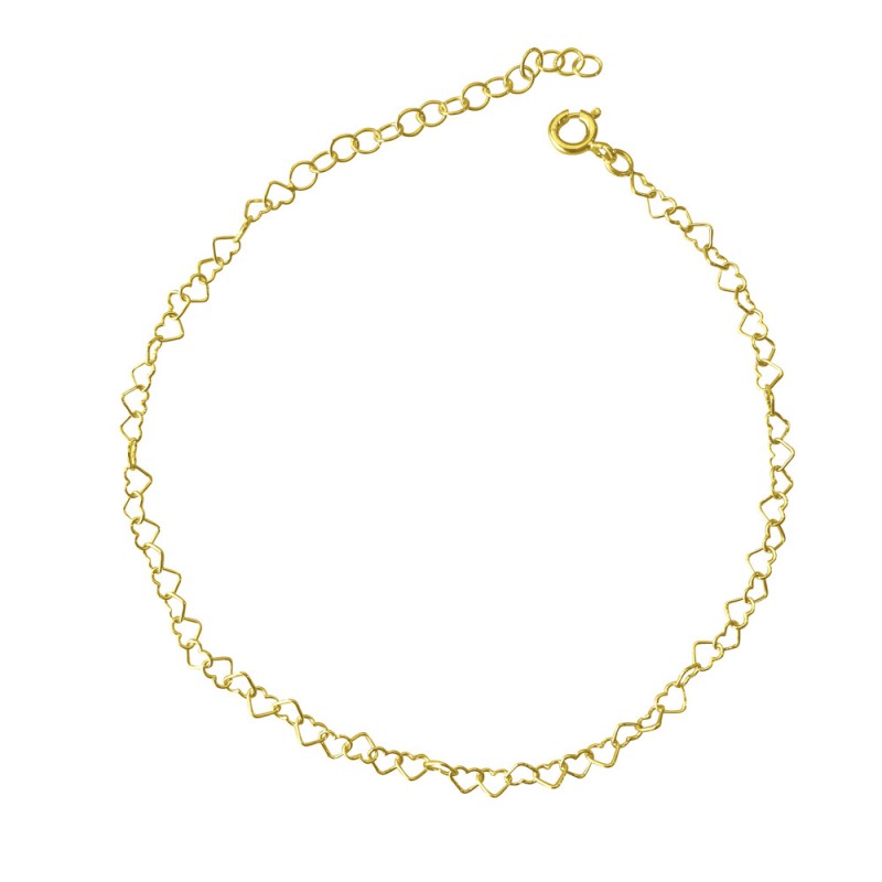 Tobillera de mini corazones en plata de ley 925, bañada en oro de 18k. Fabricado en España.