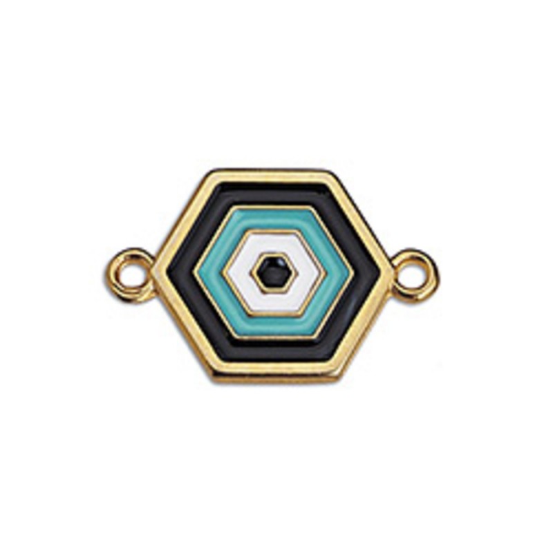 Entrepieza Hexágono ojo turco azul de 14 mm. Baño oro
