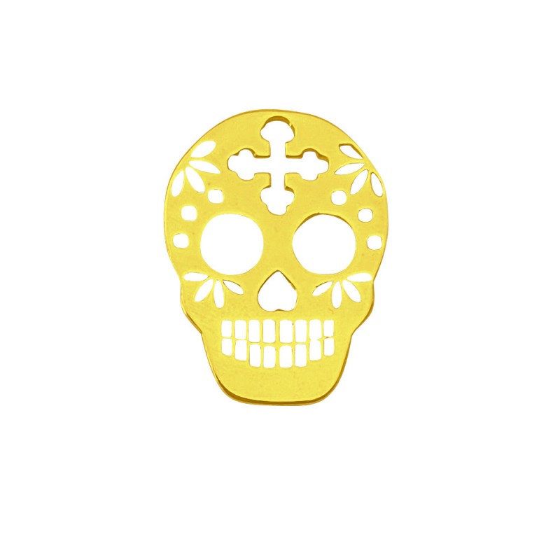 Colgante calavera mexicana con asa de 13 mm en plata de ley 925 baño oro 18k. Fabricado en España.