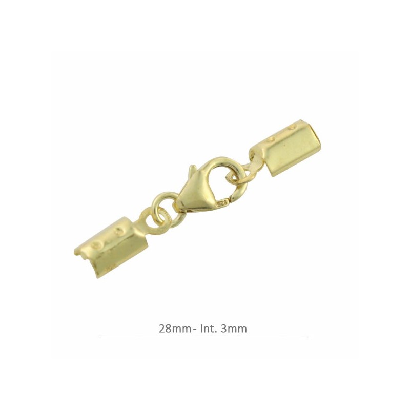 Cierre grapa y mosquetón para cordón 3 mm baño oro.
