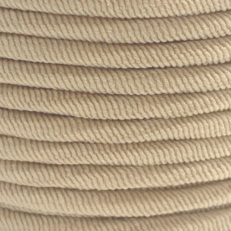 Cordón de milan elástico de 3 mm de grosor en color Beige claro. Este cordón es especial para crear tanto pulseras, gargantillas como llaveros.