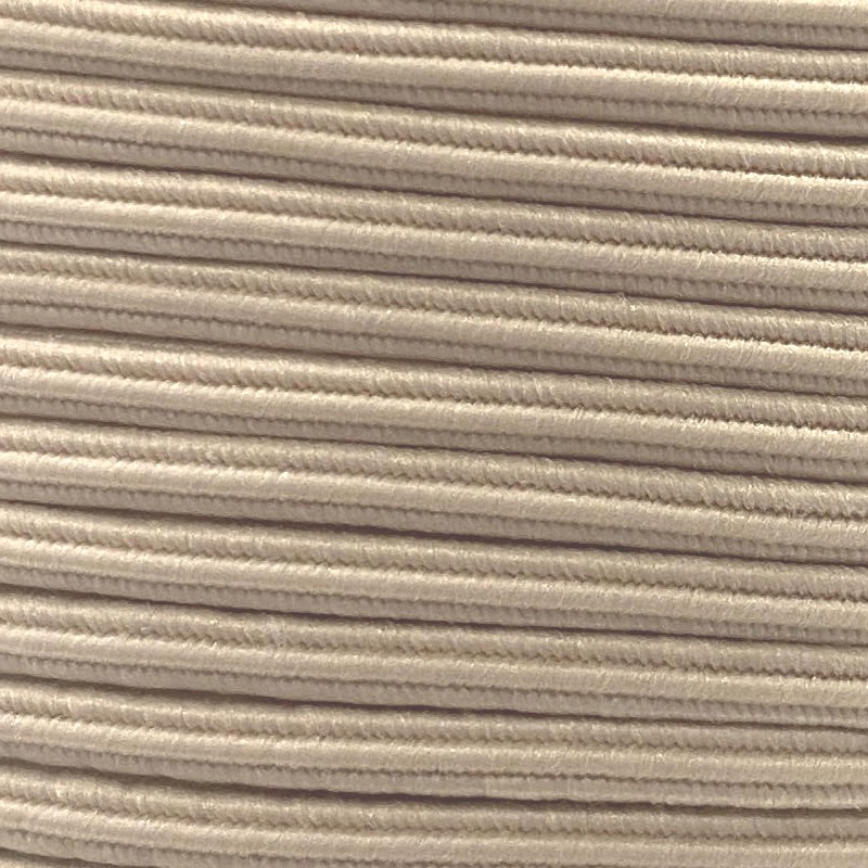 Cordón de goma elástica rayada de 2,5 mm de grosor en color Beige. Este cordón es especial para crear tanto pulseras, gargantillas como llaveros.