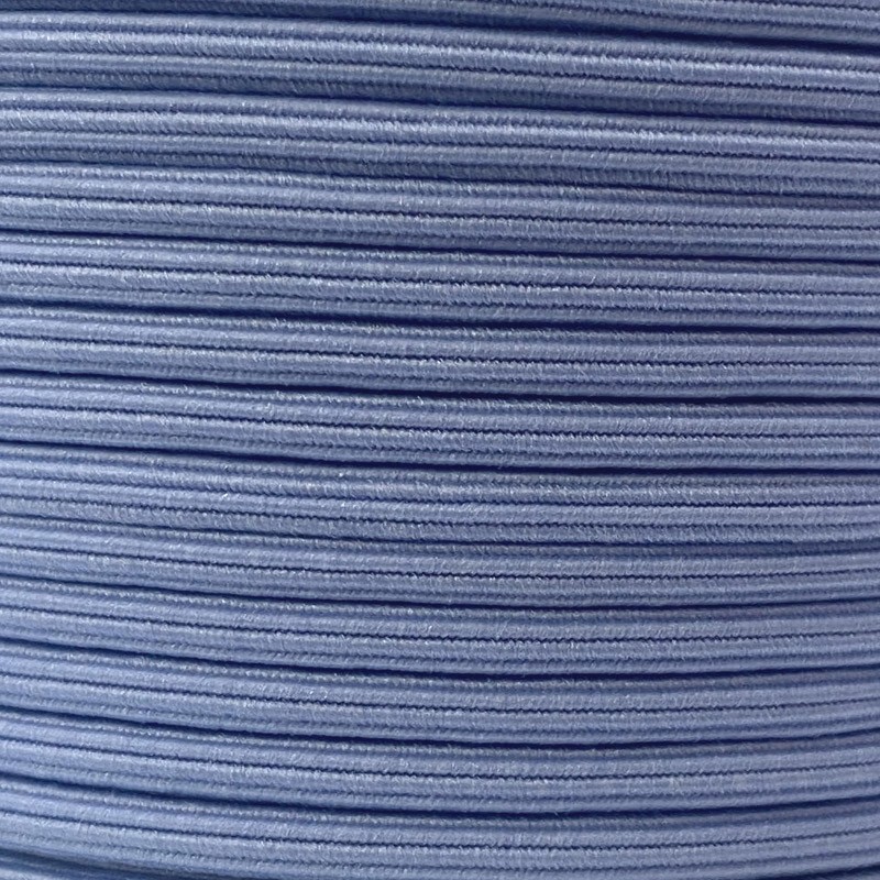 Cordón de goma elástica rayada de 2,5 mm de grosor en color azul violeta. Este cordón es especial para crear tanto pulseras, gargantillas como llaveros.