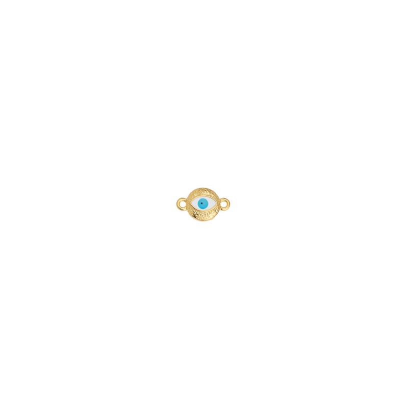 Entrepieza con dos asas ojo turco esmaltado en zamak con baño de oro 24k.