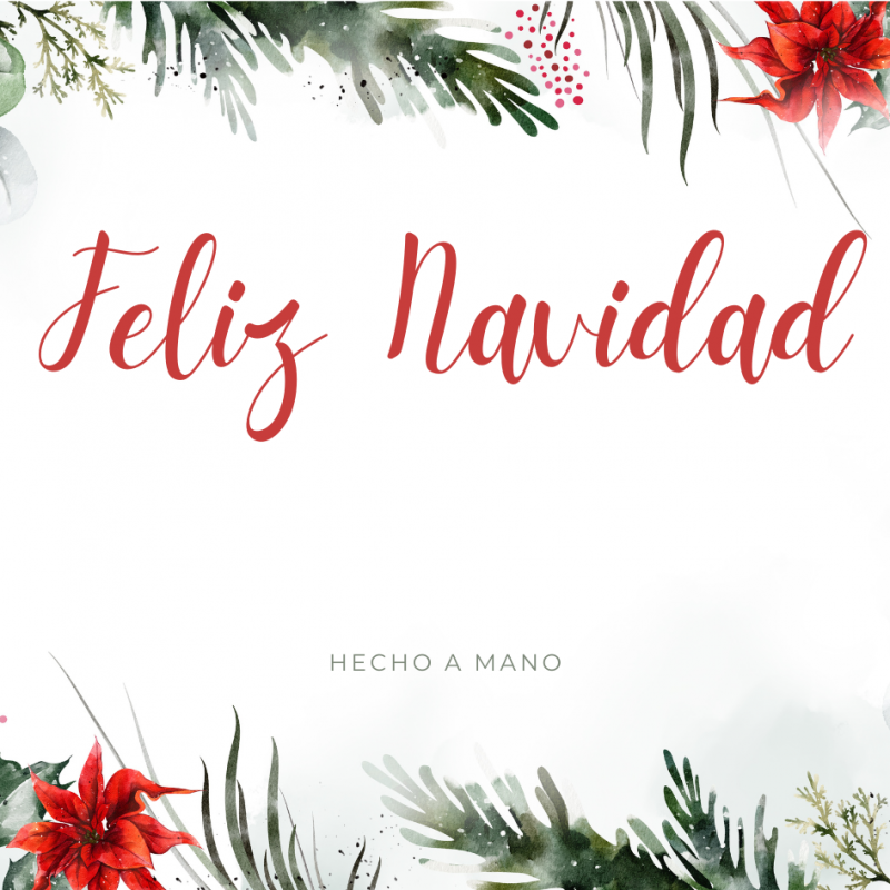 Tarjeta cuadrada de cartón con diseño de navidad floral y frase de hecho a mano, especial para envolver tus detalles + bolsa transparente. Podrás hacerle dos cortes arriba y colgarle el colgante. También dos agujeros en medio y poner los pendientes y por ultimo dos cortes en en cada lateral de la tarjeta para las pulsera.