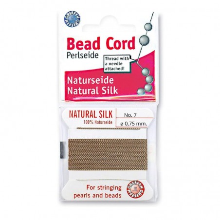 Hilo de seda para perlas + aguja. Beige 0,75mm.