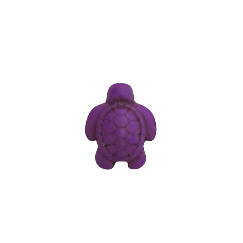 Entrepieza de turquesa con taladro en forma de tortuga en color morado. Su medida es de 17 x 14mm