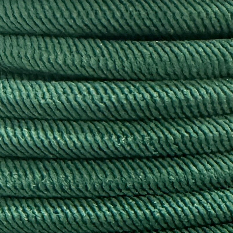 Cordón de milan elástico de 4 mm de grosor en color verde botella. Este cordón es especial para crear tanto pulsetras, gargantillas como llaveros.