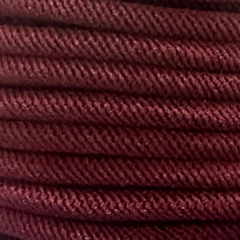 Cordón de milan elástico de 4 mm de grosor en color verde granate. Este cordón es especial para crear tanto pulsetras, gargantillas como llaveros.