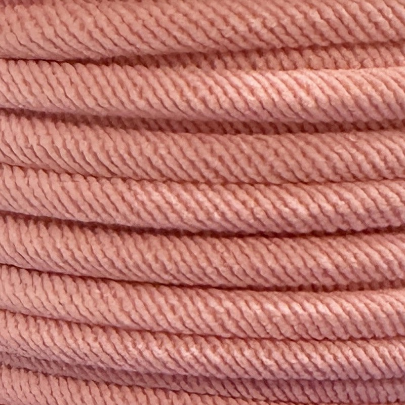 Cordón de milan elástico de 4 mm de grosor en color rosa palo. Este cordón es especial para crear tanto pulsetras, gargantillas como llaveros.