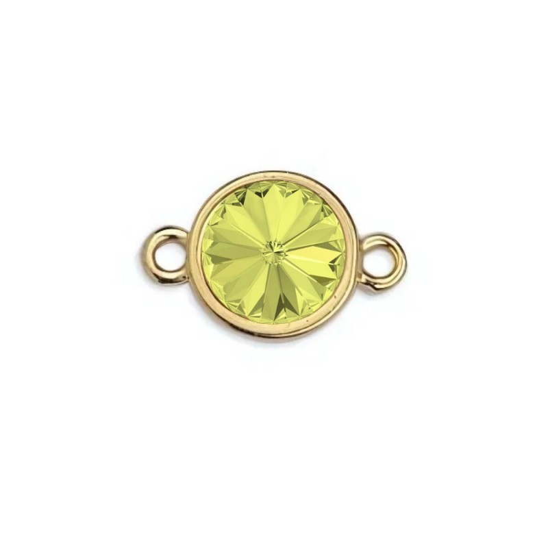 Entrepieza en zamak bañada en oro con cristal color Lemon. Le recomendamos pegar ambas piezas con nuestro pegamento especial para joyería con referencia 7405.