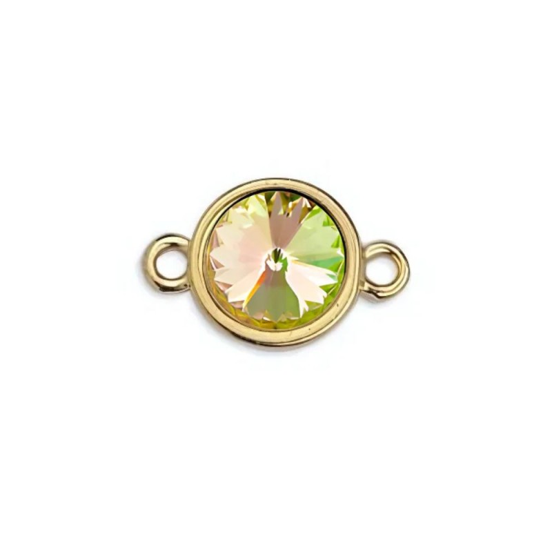 Entrepieza en zamak bañada en oro con cristal color Marea. Le recomendamos pegar ambas piezas con nuestro pegamento especial para joyería con referencia 7405.