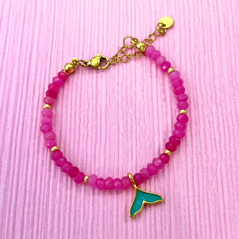 Cuentas facetadas de jade teñidas en color fucsia de 3 mm.