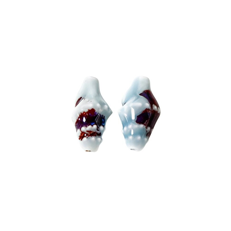 Cuenta de cerámica en forma de caracola salvaje de 20 mm de largo y 1,8 mm de agujero pasado en color azul.