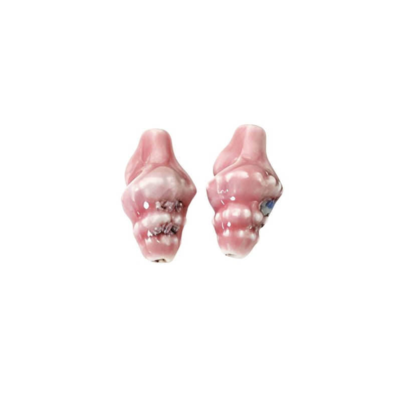 Cuenta de cerámica en forma de caracola salvaje de 20 mm de largo y 1,8 mm de agujero pasado en color rosa.