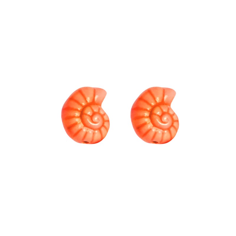 Cuenta de cerámica en forma de caracola de 15 mm de largo, 12 mm de ancho y 1,5 mm de agujero pasado en color naranja.