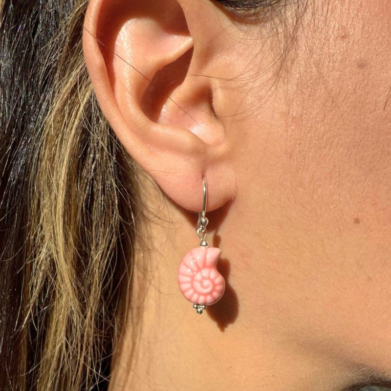 Cuenta de cerámica en forma de caracola de 15 mm de largo, 12 mm de ancho y 1,5 mm de agujero pasado en color rosa.