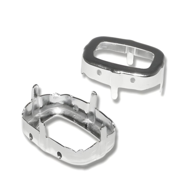 Engaste para cabuchón de Swarovski 4565 de 18x13mm en latón con baño de plata.
