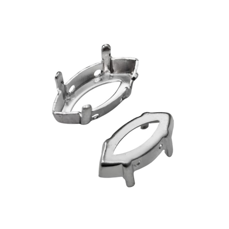 Engaste para navette de Swarovski 4231 de 15x7mm en latón con baño de plata.