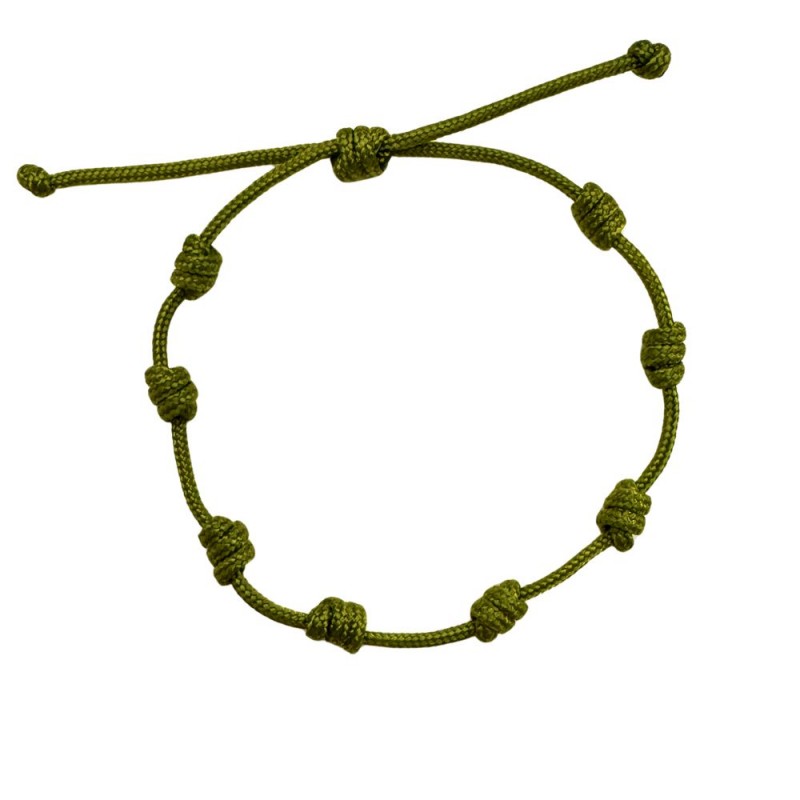 Pulsera macramé de nudos ajustable. Oliva.