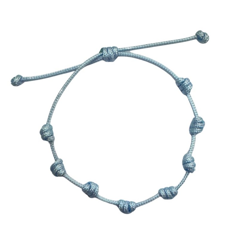 Pulsera macramé de nudos ajustable. Azul Bebé