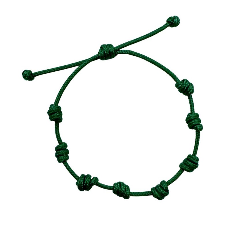 Pulsera de nudos montada con hilo de macramé de 1,5mm en color Verde Botella. Es ajustable con nudo corredizo.