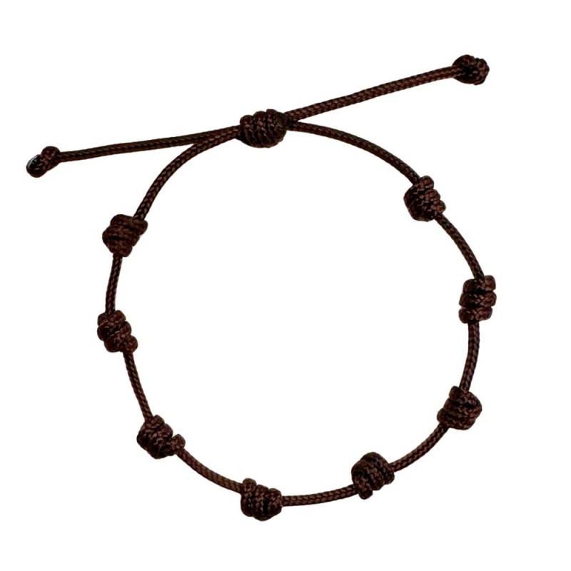 Pulsera de nudos montada con hilo de macramé de 1,5mm en color Marrón. Es ajustable con nudo corredizo.