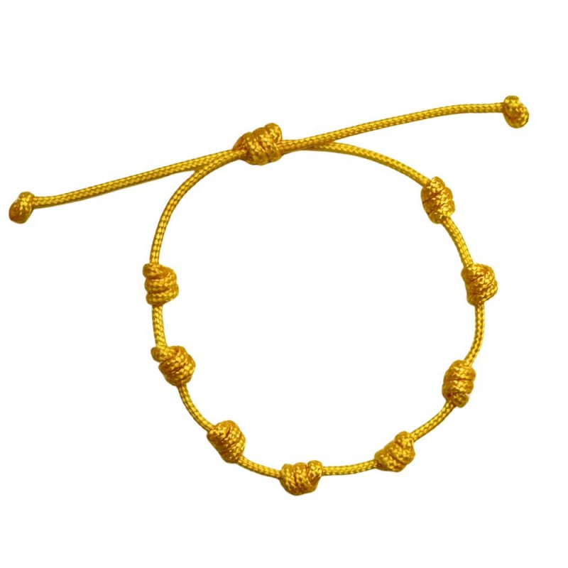 Pulsera de nudos montada con hilo de macramé de 1,5mm en color Amarillo. Es ajustable con nudo corredizo.
