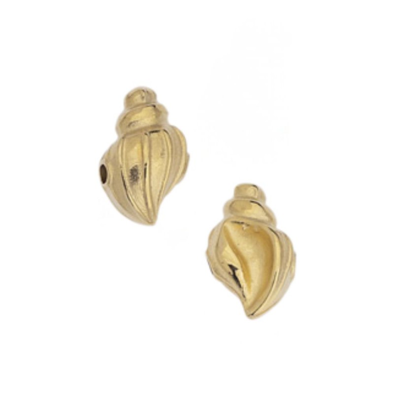 Cuenta caracola de 11,7mm. Agujero de 1,5mm. Baño oro
