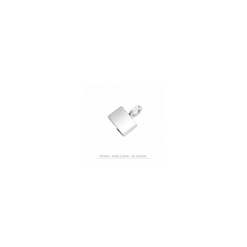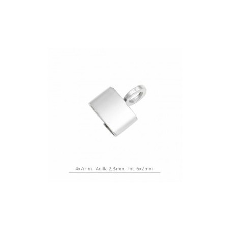 Terminal tubo oval en plata de ley. La bolsa contiene 2 unidades y el tamaño es de 6x2 mm. Tiene una anilla de 3,8 mm. y es para tira de 6 mm.