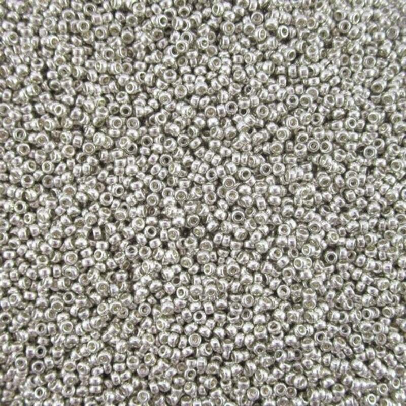 Rocalla 15/0 Miyuki. Galvanized silver.