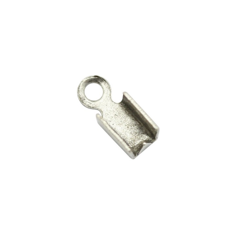 Terminal para cordón de latón en color plata vieja. La bolsa contiene 10 unidades y es para cordón de 2,20 mm.