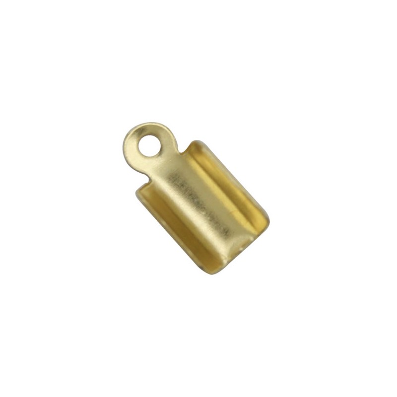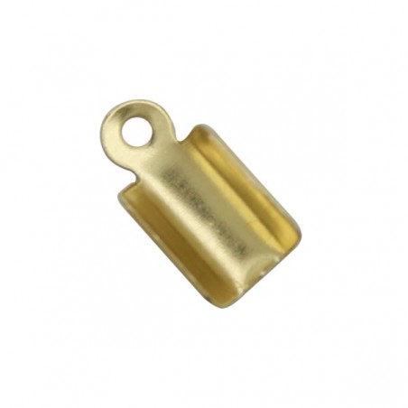 - Terminal grapa con anilla de latón en color dorado. - El tamaño interior es de 3,5 milímetros. - El precio es por bolsa y la bolsa contiene 10 unidades.