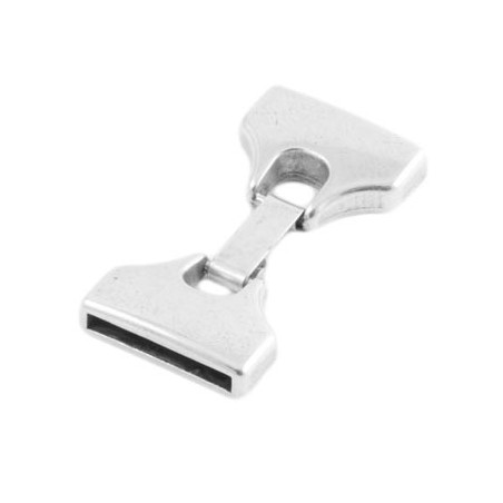 Cierre de lengüeta grande en zamak con baño de plata. La bolsa contiene 1 unidad. El tamaño es de 45x23 mm. y tiene un taladro de 19x2 mm.