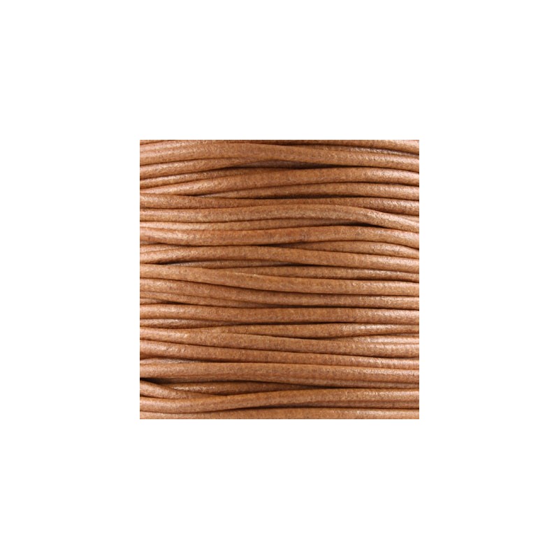 - Cuero redondo de 2 mm de grosor en color tostado, fabricado en España. Este cuero es de alta calidad y es ideal para hacer pulseras, colgantes y nudos como el corredizo.