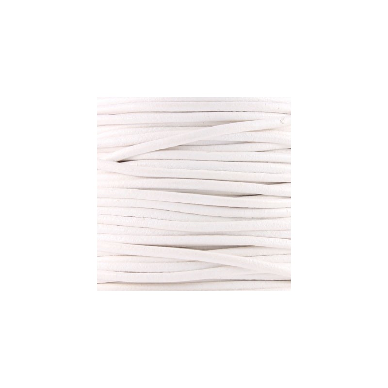 - Cuero redondo de 2 mm de grosor en color blanco, fabricado en España. Este cuero es de alta calidad y es ideal para hacer pulseras, colgantes y nudos como el corredizo.