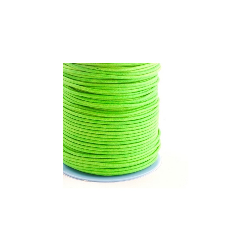 - Cuero redondo de 2 mm de grosor en color verde flúor, fabricado en España. Este cuero es de alta calidad y es ideal para hacer pulseras, colgantes y nudos como el corredizo.