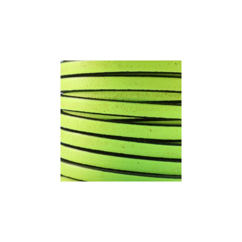 - Cuero plano de 5mm de ancho y 2 mm de grosor en color Amarillo flúor. Fabricado en España.