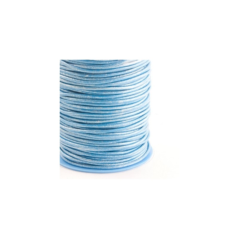 - Cuero redondo de 2 mm de grosor en color celeste perlado, fabricado en España. Este cuero es de alta calidad y es ideal para hacer pulseras, colgantes y nudos como el corredizo.