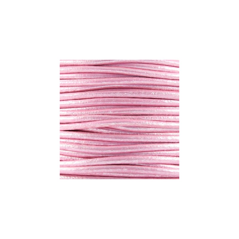 - Cuero redondo de 2 mm de grosor en color rosa claro metalizado, fabricado en España. Este cuero es de alta calidad y es ideal para hacer pulseras, colgantes y nudos como el corredizo.