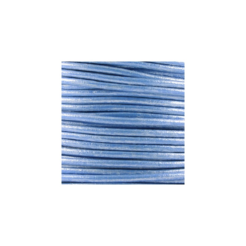 - Cuero redondo de 2 mm de grosor en color celeste metalizado, fabricado en España. Este cuero es de alta calidad y es ideal para hacer pulseras, colgantes y nudos como el corredizo.