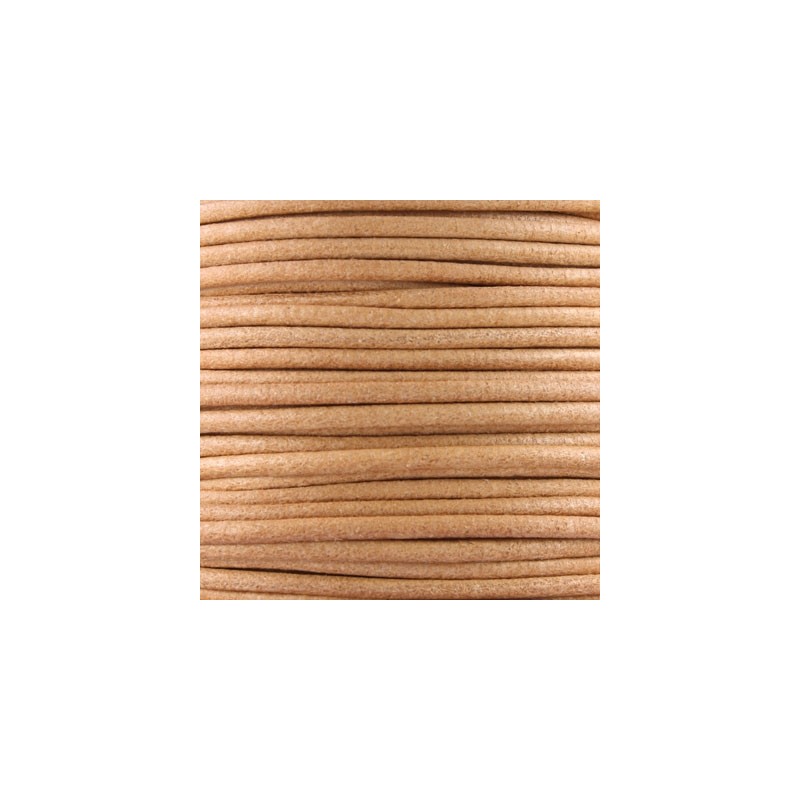 - Cuero redondo de 3 mm de grosor en color natural, fabricado en España. Este cuero es de alta calidad y es ideal para hacer pulseras y colgantes. A la hora de hacer nudos, al ser más grueso cuesta un poco más que con tamaños más pequeños.