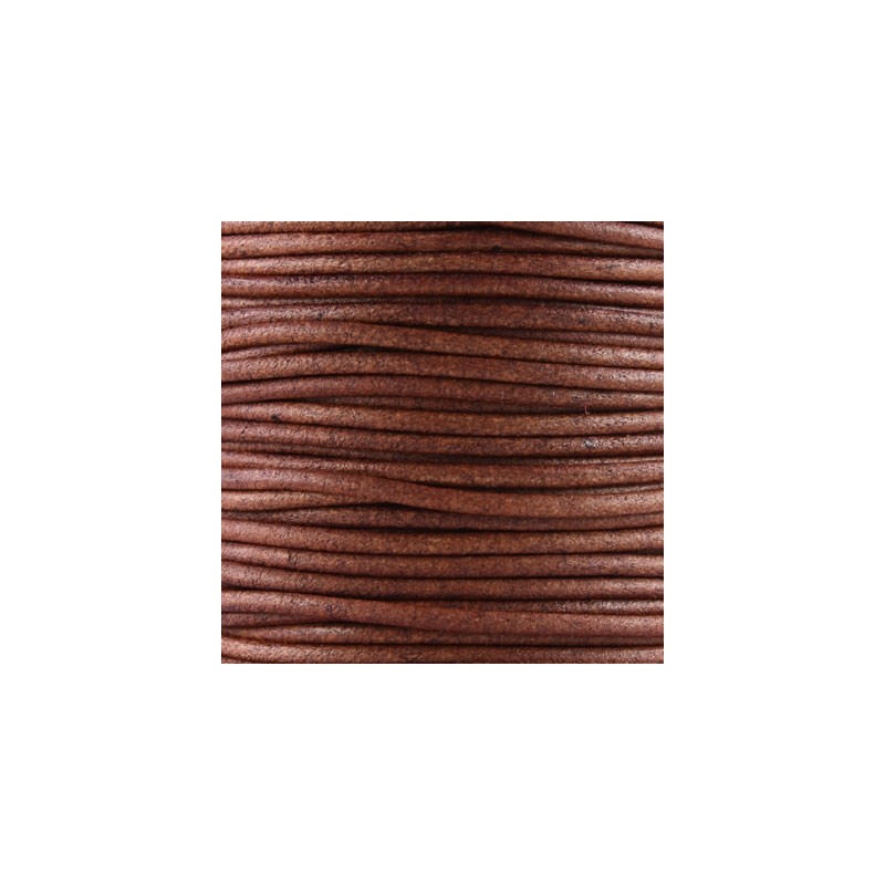 - Cuero redondo de 3 mm de grosor en color tabaco, fabricado en España. Este cuero es de alta calidad y es ideal para hacer pulseras y colgantes. A la hora de hacer nudos, al ser más grueso cuesta un poco más que con tamaños más pequeños.