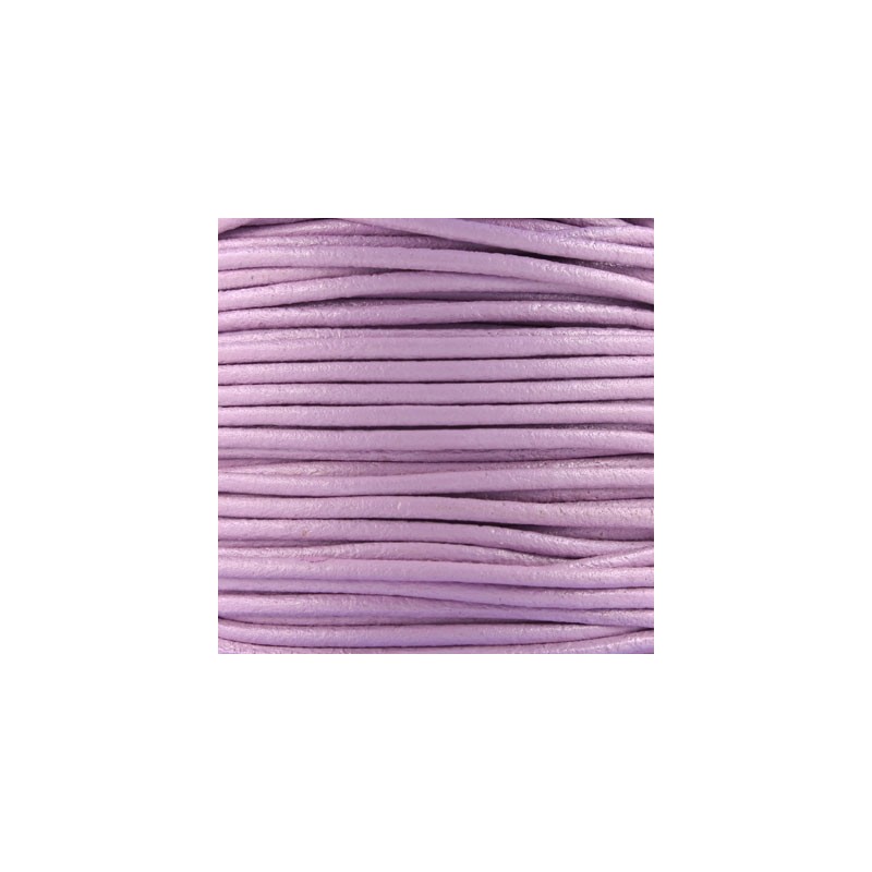 - Cuero redondo de 3 mm de grosor en color lila claro, fabricado en España. Este cuero es de alta calidad y es ideal para hacer pulseras y colgantes. A la hora de hacer nudos, al ser más grueso cuesta un poco más que con tamaños más pequeños.