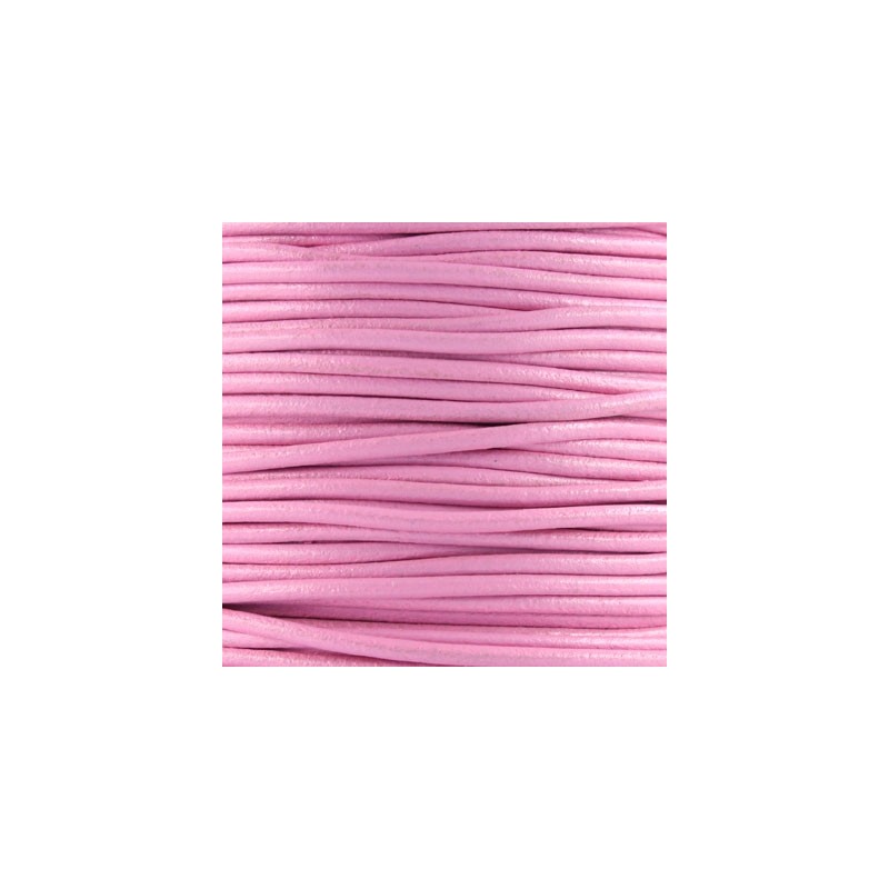 - Cuero redondo de 3 mm de grosor en color rosa chicle, fabricado en España. Este cuero es de alta calidad y es ideal para hacer pulseras y colgantes. A la hora de hacer nudos, al ser más grueso cuesta un poco más que con tamaños más pequeños.
