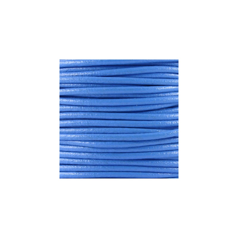 - Cuero redondo de 3 mm de grosor en color azul, fabricado en España. Este cuero es de alta calidad y es ideal para hacer pulseras y colgantes. A la hora de hacer nudos, al ser más grueso cuesta un poco más que con tamaños más pequeños.